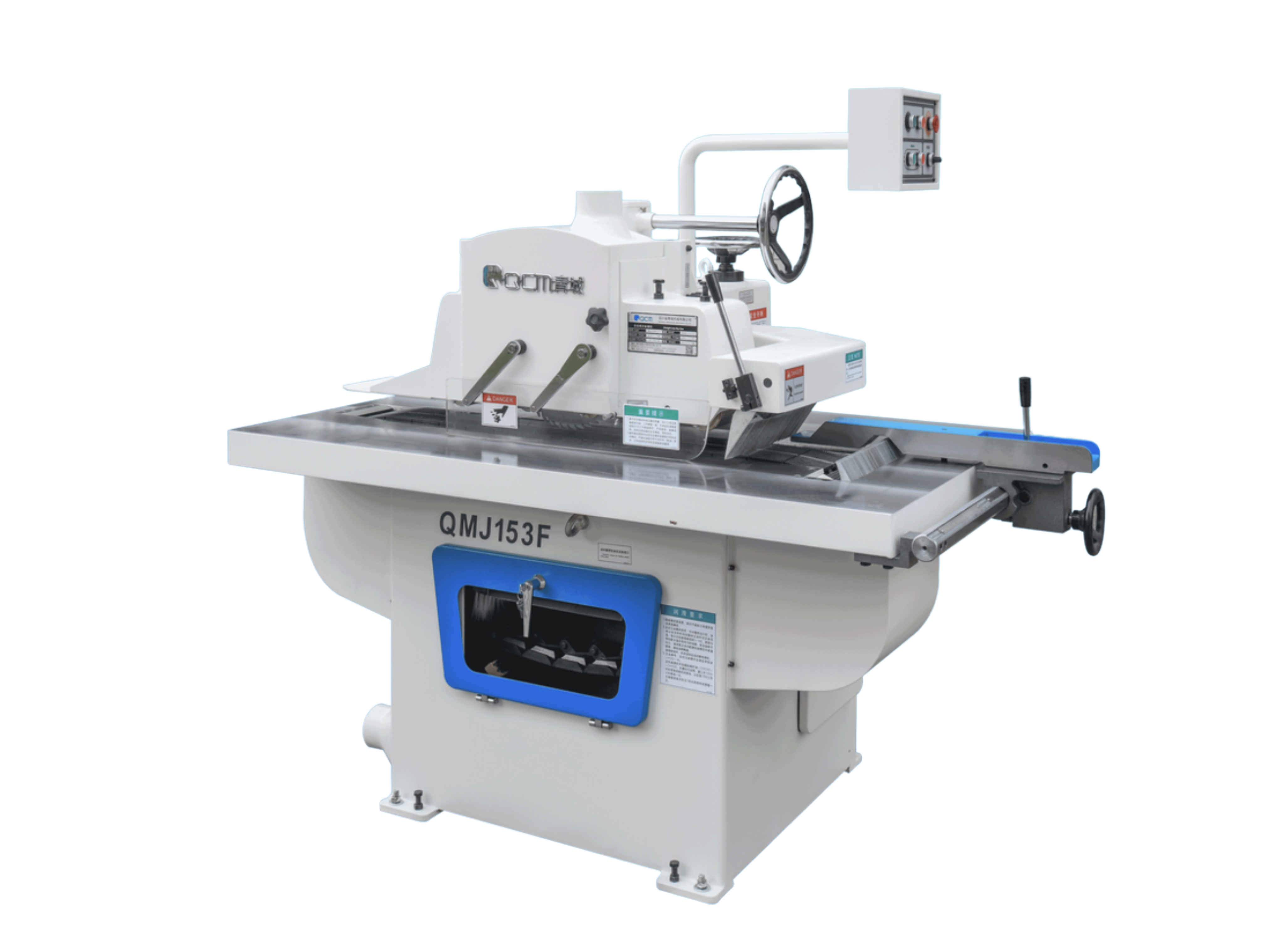 • Adjustable Feed Speed (QMJ153F) – Variable frequency drive allows continuous adjustment from 8–24 m/min to suit different cutting needs.